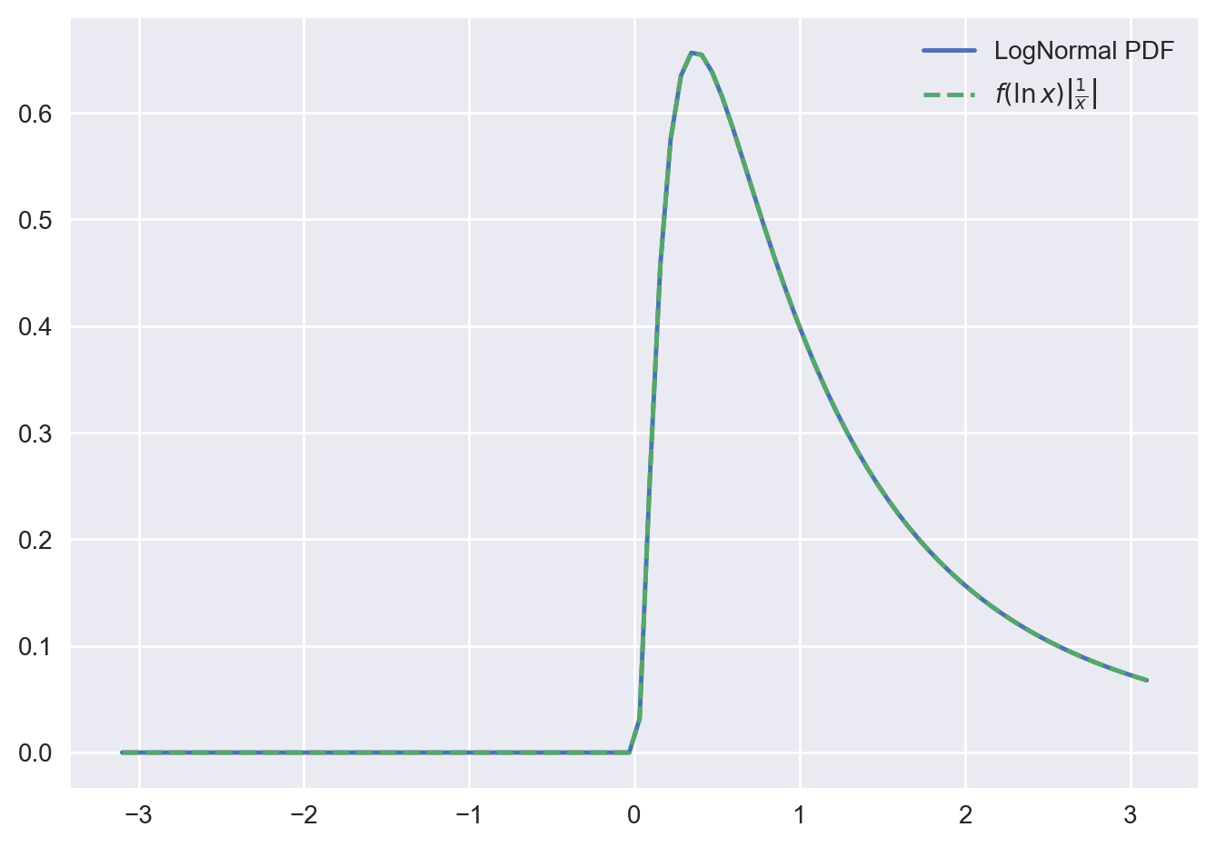 Let’s visualize this result through a concrete example. We look at the transformation of a normal distribution to a lognormal distribution.